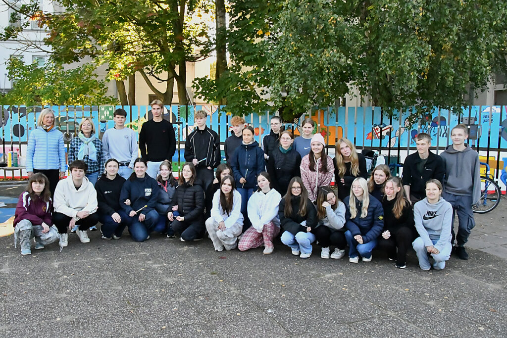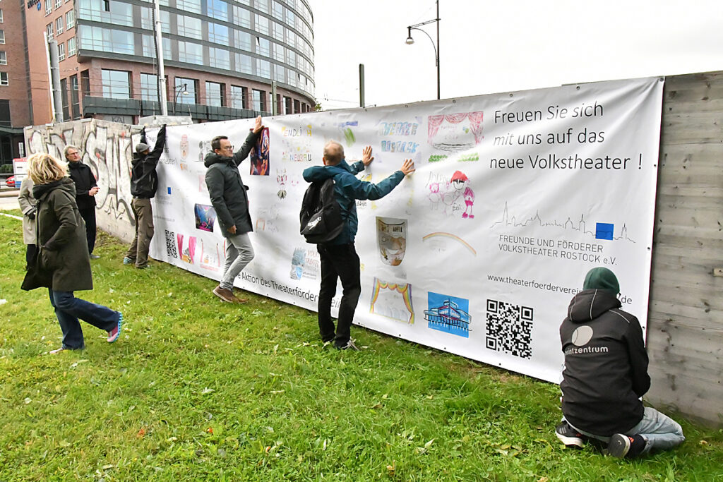 Die nach 5 Jahren fällige Neubemalung des Zaunes auf dem Theatervorplatz wurde dieses mal durch Schüler* innen der Kinder- und Jugendkunst-akademie Rostock ausgeführt.