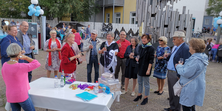 Die neuen Mitglieder kamen fast alle um 15 Uhr an den Stand des Vereins. Gemeinsam stießen wir auf das Theater, die neue Spielzeit und unsere Gemeinschaft an, ein schöner Moment unter hellblauem Himmel!