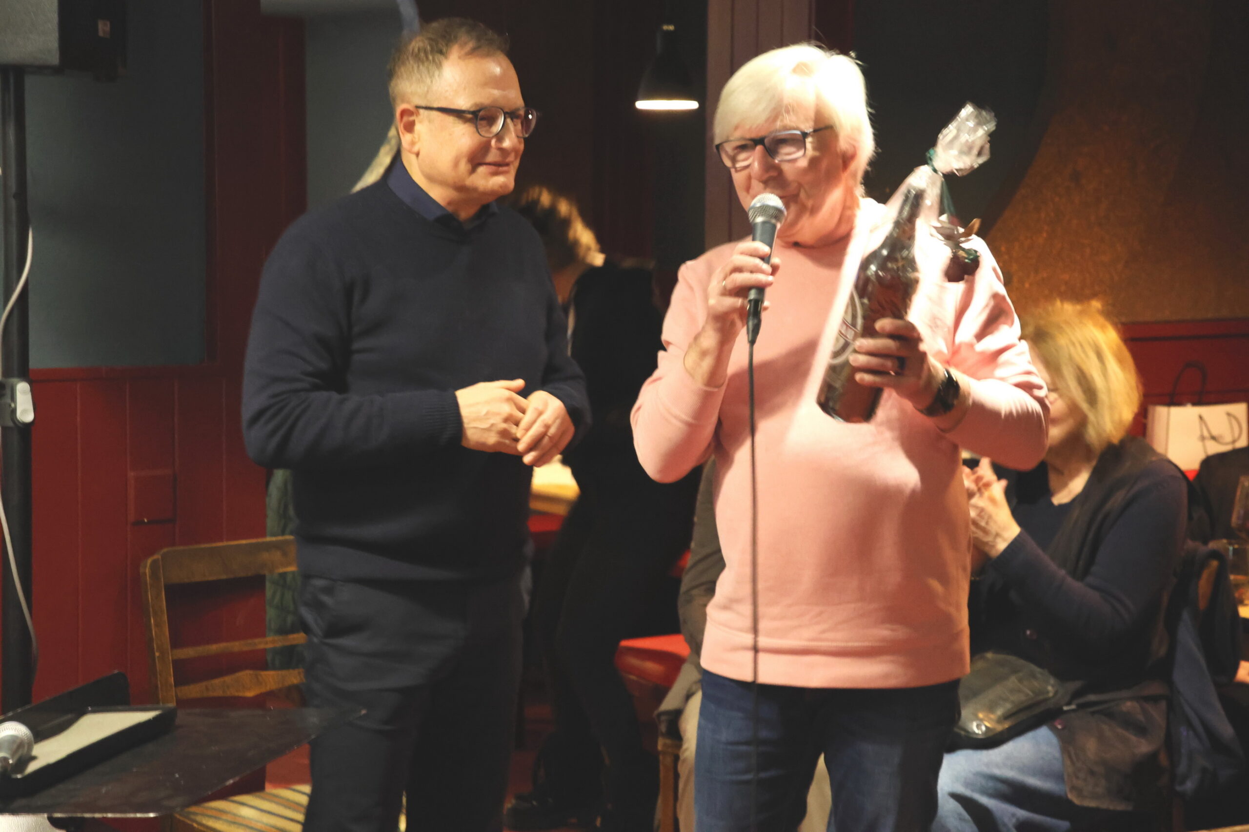 Zunächst aber hat unser Schatzmeister Hartmut Jaster die Gelegenheit wahrgenommen dem Vorstandsmitglied Bernd Umbach, der just an diesem Tag Geburtstag hatte, herzlich zu gratulieren. Außerdem wurden Grüße unserer Vereinsvorsitzenden Dr. Doris Geiersberger ausgerichtet, die nach Ihrer Hüft-OP noch nicht teilnehmen konnte – Bernd Umbach hatte deshalb diesmal die Moderation übernommen und das Interview mit Cindy Weinhold geführt.